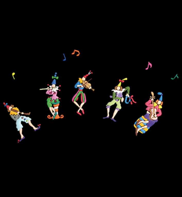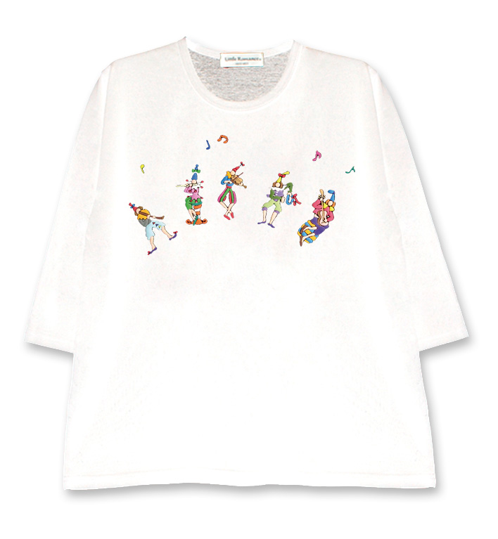 Littleromance > シルケット七分袖 > N-2315 レディス七分袖シルケットTシャツ(前面のみ) 5人ピエロのコンサート