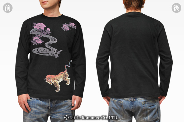 S-1982 long 和柄メンズ長袖Tシャツ 鵺牡丹