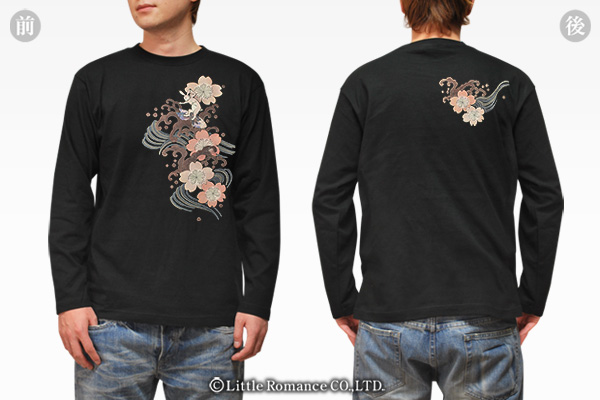 メンズ長袖和柄Tシャツ > サーフ > S-2034 long 和柄メンズ長袖Tシャツ 桜波兎