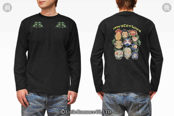S-1972 long 和柄メンズ長袖Tシャツ 怪奇上下見図