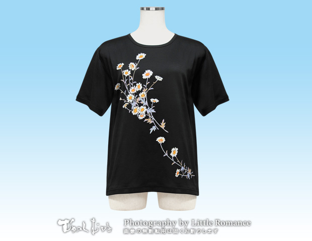 Littleromance > シルケット半袖 > 立体プリント > S-1768 和柄レディス半袖シルケットTシャツ (前面のみ) マーガレット