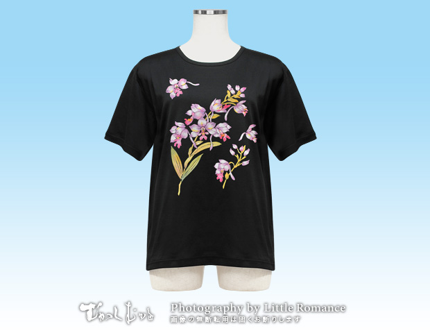 シルケットTシャツ > レディースシルケットTシャツ(花柄) > S-2486 和柄レディス半袖シルケットTシャツ (前面のみ) エビネ