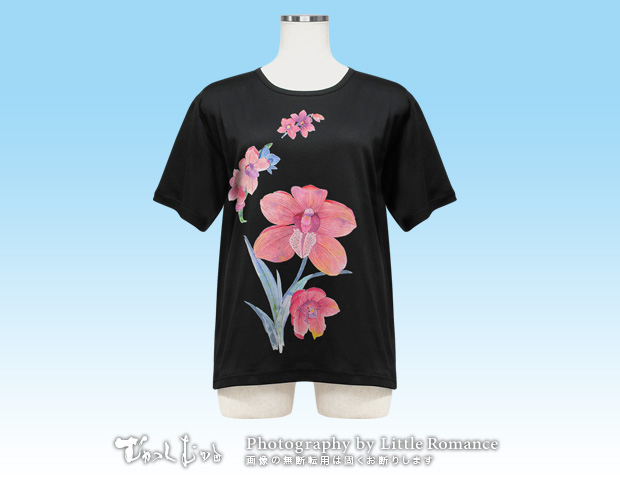 シルケットTシャツ > レディースシルケットTシャツ(花柄) > S-2023 和柄レディス半袖シルケットTシャツ (前面のみ) シンビジュームB
